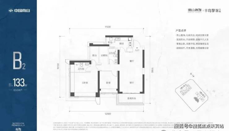 B2有两条腿,分别1-2栋03/04,主朝向西南向,竖厅设计。