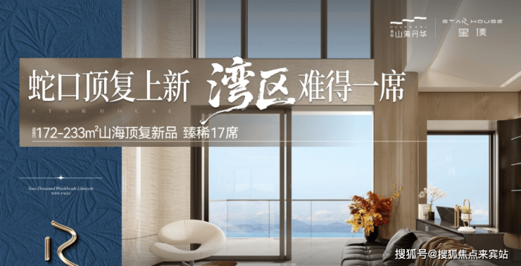 山海丹华府是目前整个赤湾板块,唯一一个非超高层的新房住宅小区,总高只有29-31层,顶楼复式户型作为项目的收官之作,位于楼王位置,视野开阔,可俯瞰山海景观及园林景观,仅设17套,户型面积涵盖171-233平方米,层高约3.1米,采用2梯4户设计。