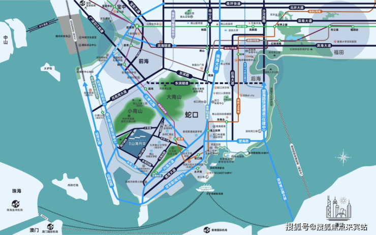 多路网:兴海大道、南海大道、望海路、妈湾跨海隧道(建设中)等多条干道环绕,从容往来全城。