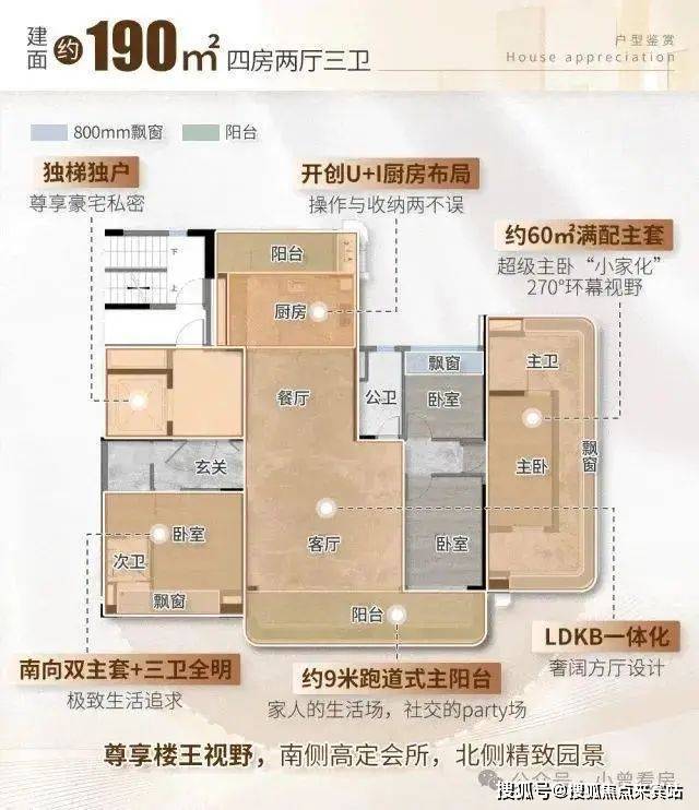 • 极致户型:全南向纯板楼设计,120-190㎡主力户型,层高3-3.3米,使用率高达120%,专梯专户私密性极佳。