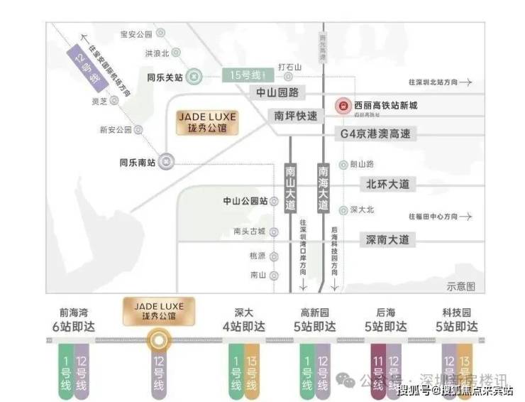 •15号线同乐关站(在建中,预计2028年12月开通),串联宝中/前海/深圳湾/西丽,也被称为深圳“一环线”,本项目为环线上的重要一环;