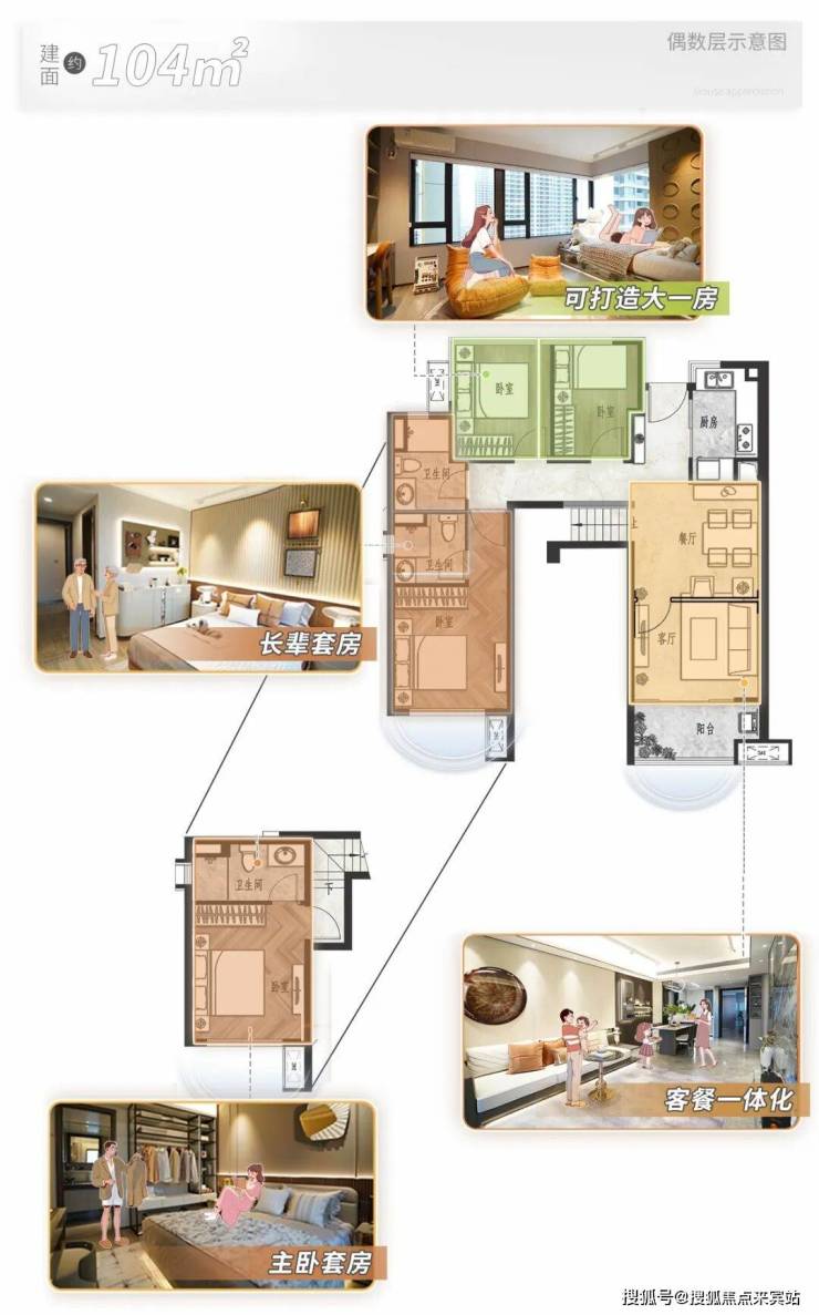 | 建面约104平户型创意示意,仅供参考