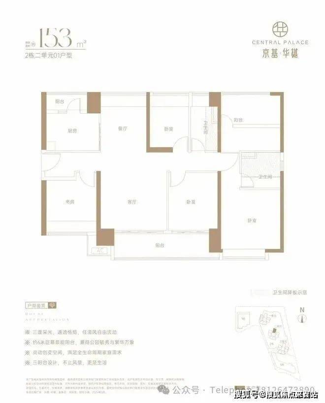 分布在2栋二单元01户型,三阳台设计,三面采光,通透格局,6米大阳台连接客厅和次卧,靠近客厅的一间卧室可以打掉(不是承重墙)让客厅更加宽敞,主卧套间设计,全屋多飘窗,赠送/使用率不错。