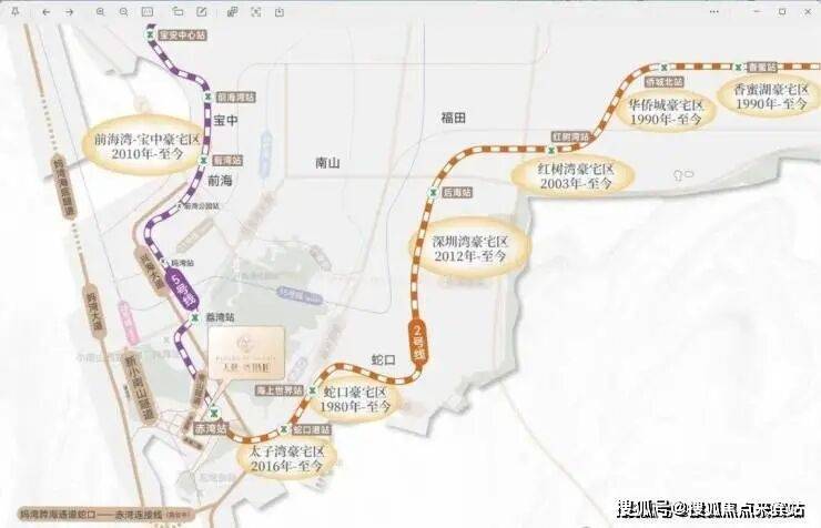 项目距地铁2号线与地铁5号线首发赤湾站约300m(直线距离),从此,坐地铁而不是站地铁,未来新小南山隧道(预计2027年竣工)、望海路升级等重大交通配套持续落地,咫尺间连通蛇口、前海。