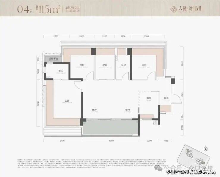 面积约115平四房两厅两卫
