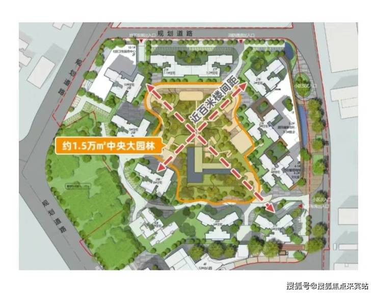 整个采用围合式布局,拥有近百米楼间距,把充足的空间,留给园林、绿地,打造一座城市中轴之上,罕见的建面约1.5万㎡中央大园林。
