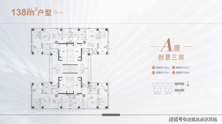 天宸138㎡户型,四梯四户,专梯入户,整个框架可以灵活打造,大面积没有承重墙和承重柱,可以随心设计自己的家。电梯厅加厨房,外部连廊加半个阳台算赠送面积,所以空间利用还算挺高。