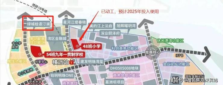 项目南边就是横沥岛54班九年一贯制的学校用地,小区内有配建的幼儿园,附近还有一所已经封顶的小学,预计在2025年交付使用;