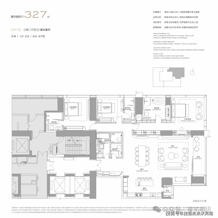 联泰超总湾大平层公寓由304㎡、327㎡、402㎡、568㎡、1000㎡共5种户型组成,以下是小区楼栋分布效果图和304㎡、327㎡、402㎡、568㎡这4个户型的户型图: