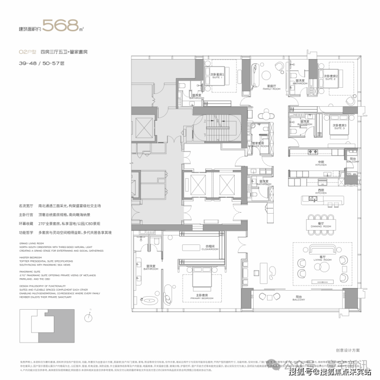 4. 建面约568-570㎡ 四+一房五卫+家政套间