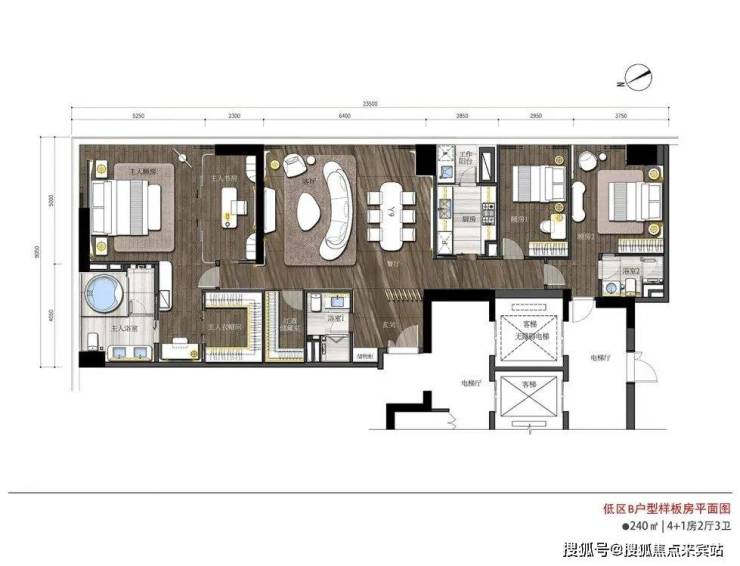 三梯三户,双电梯入户,私密商务会晤