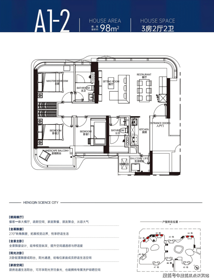 横琴科学城一期,仅6栋568席准现房住宅,建筑面积约94-100㎡精致户型,精装交付,两室及三室格局,皆以人性化设计满足多样生活需求。