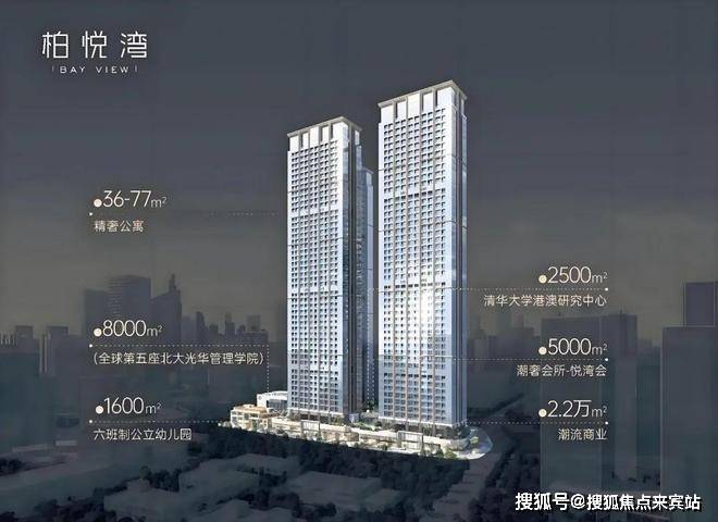 恒裕柏悦湾由2栋47层高公寓与2栋42层商办组成项目自带·约2.2万㎡潮流商业·约5000㎡精英会所·约8000㎡北大光华管理学院(北大光华瑞思楼)·约2500㎡清华大学港澳研究中心·约1600㎡六班制公立幼儿园共同组成约37万㎡垂直综合体——200米深湾超级地标
