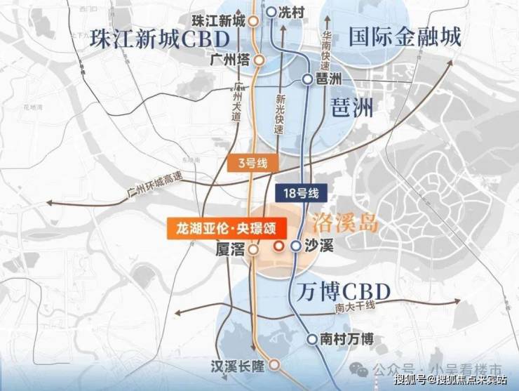项目周边有地铁3/18号线,从小区步行到18号线沙溪站约790米左右,需要走12分钟,乘坐18号线可以1站到万博,2站琶洲,3站珠江新城,走到3号线厦滘站会比较远,约1.5公里,要走22分钟左右,3号线去珠城,广州东站也是直达。