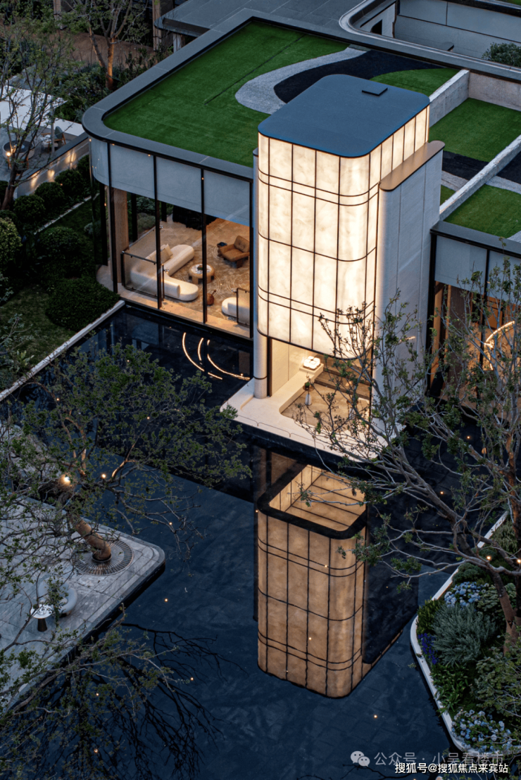 水景中部打造1500方林下浮岛花园,上方复刻东京安缦森林盒子的“隐心茶坞”,四周宣纸玻璃环绕,犹如一个精致的玻璃盒子隐藏在森林中,在此品茗、静心,何其惬意。
