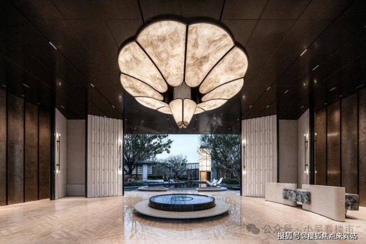 环岛式落客的设计,给足业主五星级酒店般的尊崇感,地面引用纽约安缦同款拼花,高级感满满;近40米的酒店式超大归家大门,恢宏大气,全方位塑造归家仪式感。