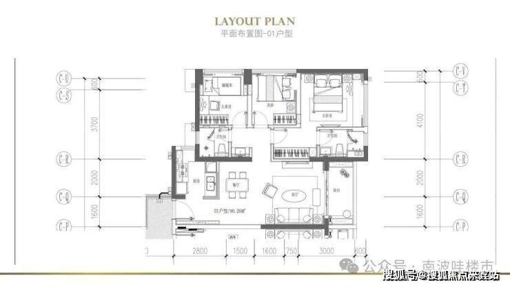 🔻建面约90㎡(或89㎡)——01户型(东向)