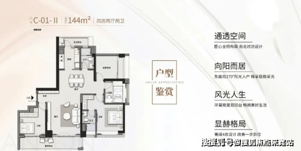 建筑面积约144㎡ 四房两厅两卫:C-01-II户型,超大空间设计,享受极致的生活体验。