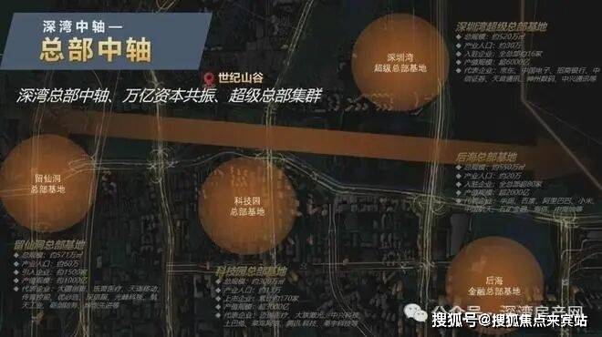 ①总部长廊:西有深圳湾高新区总部基地、后海总部基地,南接深圳湾超级总部基地,三大超级总部环绕。