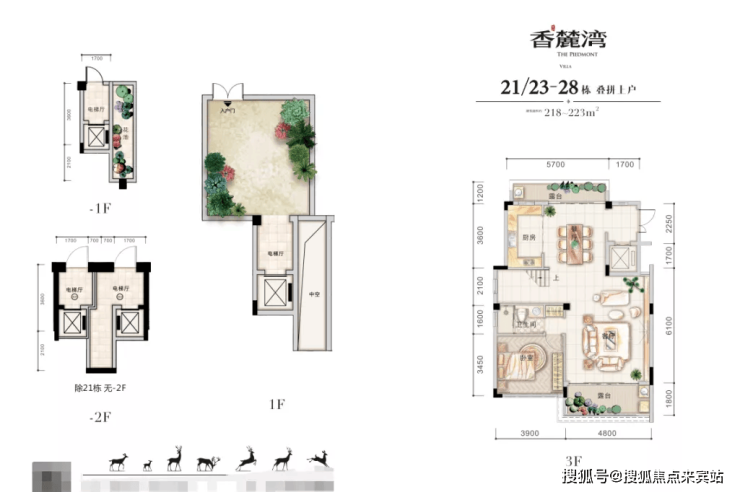 叠拼别墅是上下两户叠加在一起的一种新式别墅,其内部空间具有独栋别墅的一切元素。香麓湾叠拼别墅上户为-1、3、4、5楼,-1层为地下车库,可乘电梯直达3楼,1楼专享独立院落,又与下户出入互不干扰。各楼层空间布局合理,自然通透,多重生活场景,打造全龄人居空间。