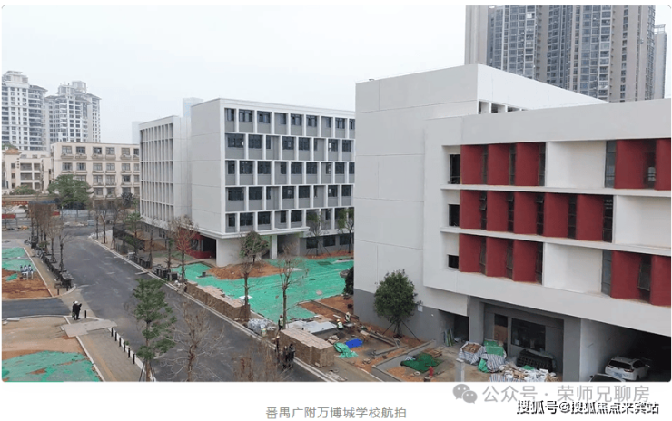 据了解,目前一期配建的学校已经封顶许久,外立面已经完工,正在进行绿化地砖的铺装,还有室内的装修。