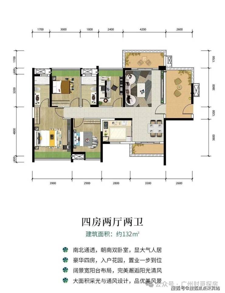 4️⃣对流升级:满足主卧或餐客厅南北对流;