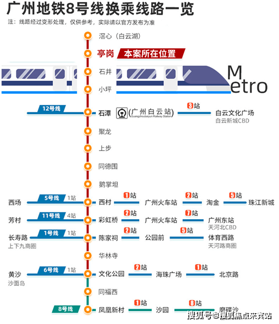 轨道枢纽|零距离接驳地铁:300米 直线距离即达地铁8号线亭岗站B口,快速融入广州轨交网络。同时,区域内还规划有 13、14、22、24、29号线等6条地铁线路环绕,形成高效轨道辐射网,轻松通达全城。