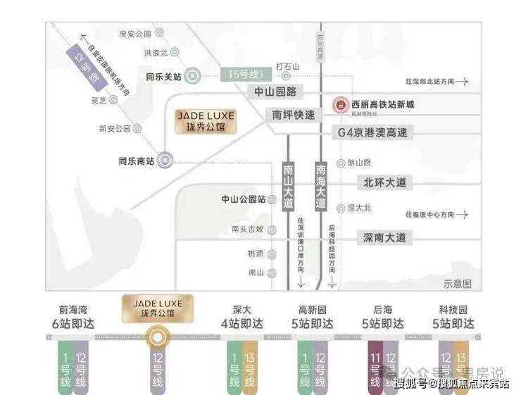 距地铁12号线同乐南站约500米,4站直达科技园,5站至高新园;在建的15号线(2028年通车)串联前海、深圳湾等核心区,形成“一环线”通勤网络,对科技园、前海通勤族友好。