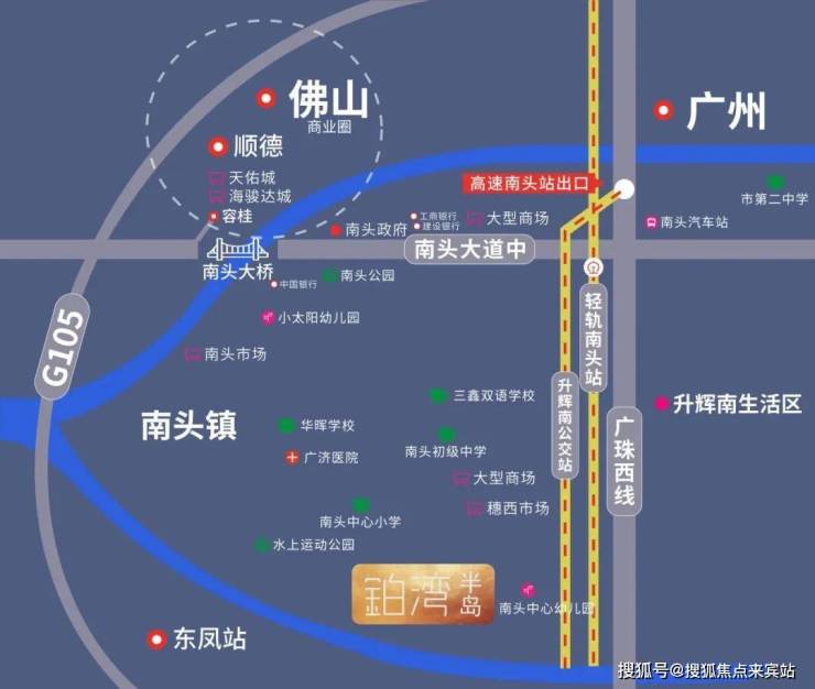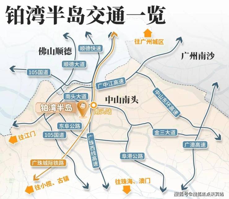 项目位于中山北部南头镇,广佛中交汇处,粤港澳大湾区中⼼,重点交通枢纽。