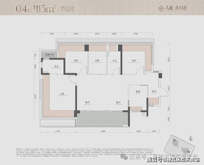 亮点:户型为正4房2厅2卫,3.15米层高+6.3米阳台+精装U型厨房,实得率超100%,南向采光面宽达10米。