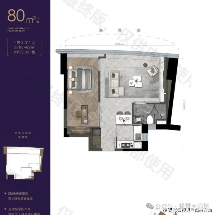 约7.7米阳台,一线澳门海景及城景,双重享受