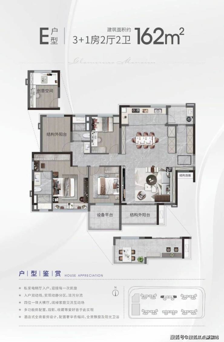 建面约89-162㎡创变三至五房,南北通透格局,使用率高达100%,全南向采光。