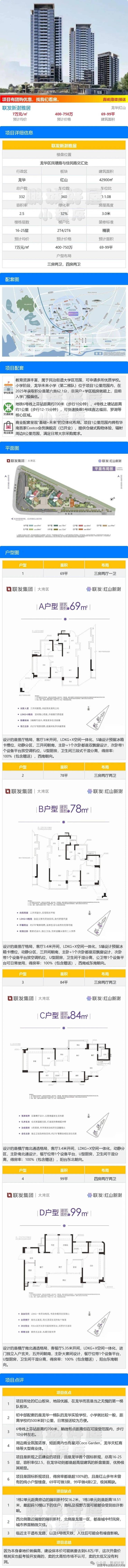 龙华区红山板块【联发新澍雅居】吹风价曝光,69㎡3房1卫约450万-480万(单价6.5-7万),78㎡3房2卫约510-560万(单价6.5-7.2万),84㎡3房2卫约530-596万(单价6.3-7万),99㎡4房约660万-720万(单价6.6-7.3万)!