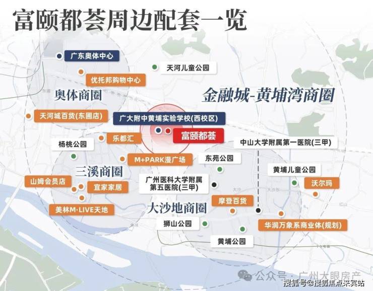 4大医疗保障:中山大学附属第一医院(三甲)、广州医科大学附属第五医院(三甲)、广州市黄埔区中医医院、天河第二人民医院(规划中)
