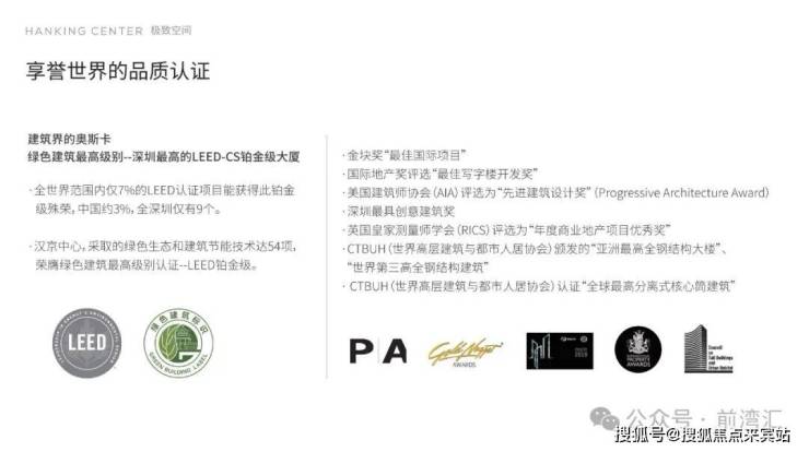 国际资质标准:LEED铂金级认证 . 绿色建筑三星认证 . 美国建筑师协会(AIA)
