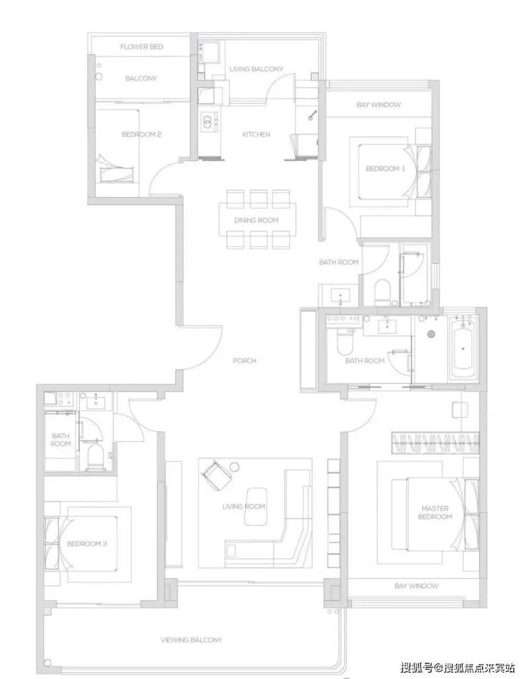 168㎡四叶草户型 四室两厅三卫