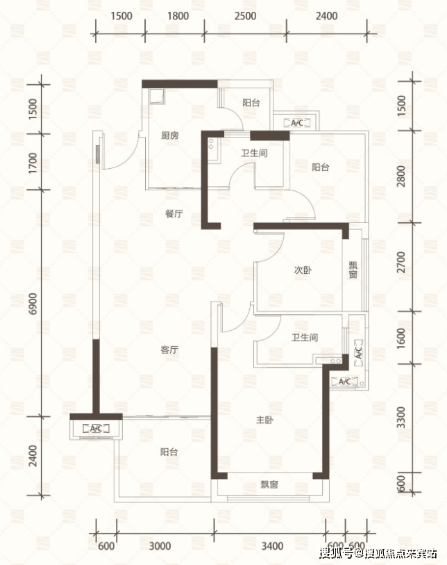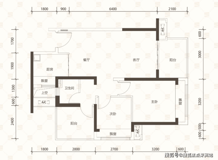 A户型约95㎡3房2厅2卫