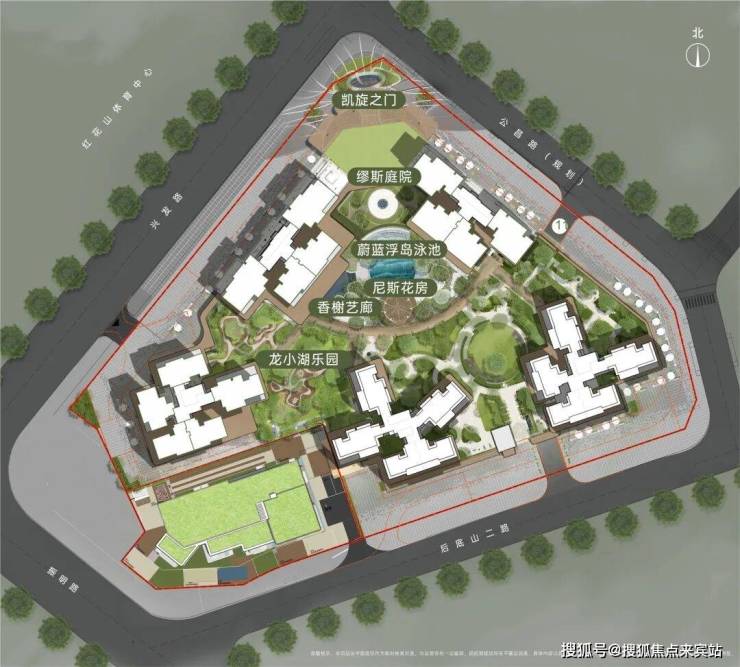 龙湖深圳·观萃选择用“舍得”来回应这片土地——牺牲一栋楼的货值,换来约6500㎡中央园境。这不是绿化率的数字堆砌,而是一座可以走进去、坐下来、生活其中的“社区绿洲”。台地式设计,将社区整体抬高,与城市道路自然区隔。引山入园,将红花山公园“请”进社区,推窗见山、出门入园。