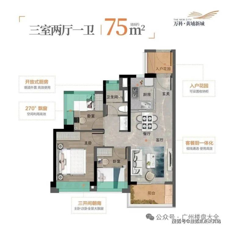 5、产品:户型涵盖75-88㎡三房,105、125、142㎡四房