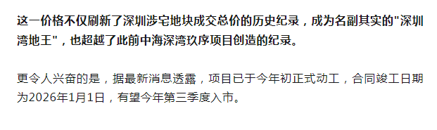 这个被业内称为"史上最贵宅地"的项目已于今年初正式动工,预计今年第三季度入市,业内预测,「后海沄玺花园」入市均价或达16万/㎡左右。