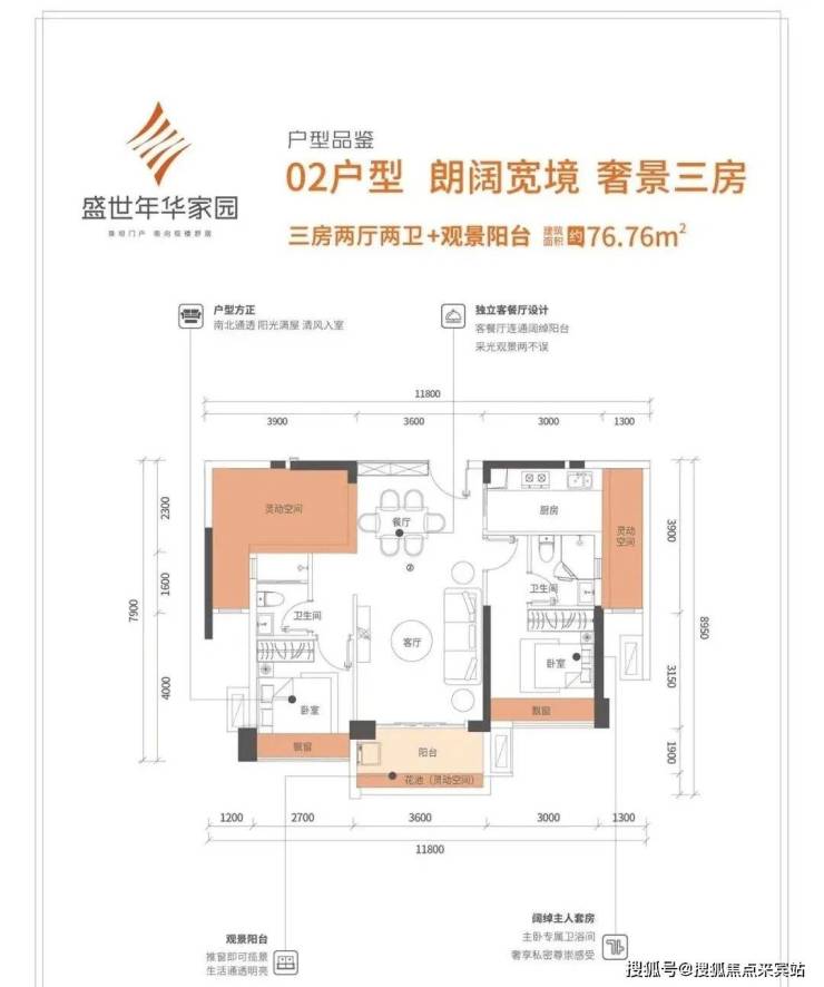 幸福进阶,舒适三房--建面约88㎡三房两厅两卫+观景阳台,郎阔宽境,奢景三房,建面约77㎡三房两厅两卫+观景阳台