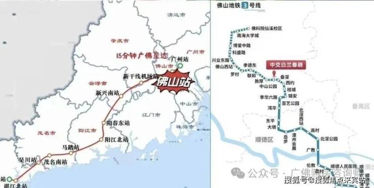 据广湛高铁佛山站仅1700米海五路西延线已开通,10分钟即达千灯湖广湛高铁定址佛山火车站,未来一站达广州城芯,25分钟达白云机场