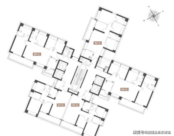 01-02户型116平3房2卫,03、05户型142平4房2卫,04户型120平3房2卫,4梯5户,层高3.1米;