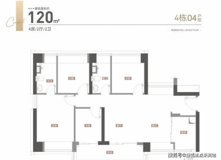 01-04户型100平3房2,05-06户型120平4房2卫,4梯6户,层高3.1米。