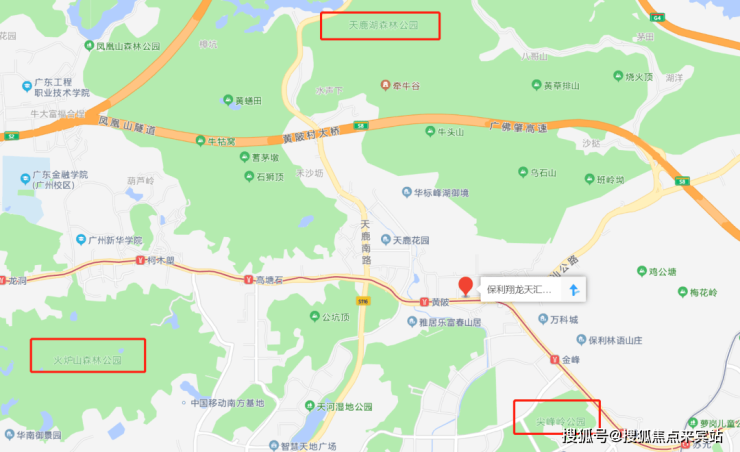 项目周边稀缺生态资源环绕,譬如约600公顷的火炉山森林公园、约880公顷的广州东肺帽峰山/天鹿湖森林公园,还有梅花岭/尖峰岭公园,广州科学城体育公园……