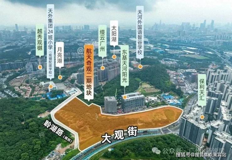 航天奇观二期宅地(天河智谷片区023地块)就在世界大观旁,紧邻保利天汇东侧、缦云广州北侧。