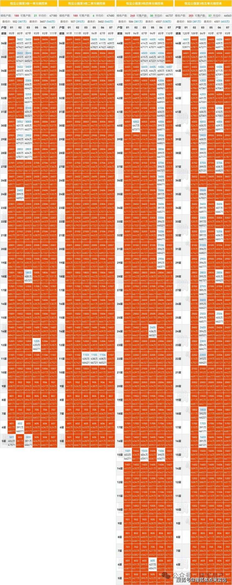 下面是宏发悦见公园里全套的备案价格+销控表,供大家参考。