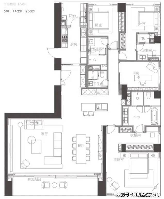 面积:230-280㎡3房3卫,300-380㎡4+1房5卫,576㎡4+1房6卫,600-700㎡6-7房7卫