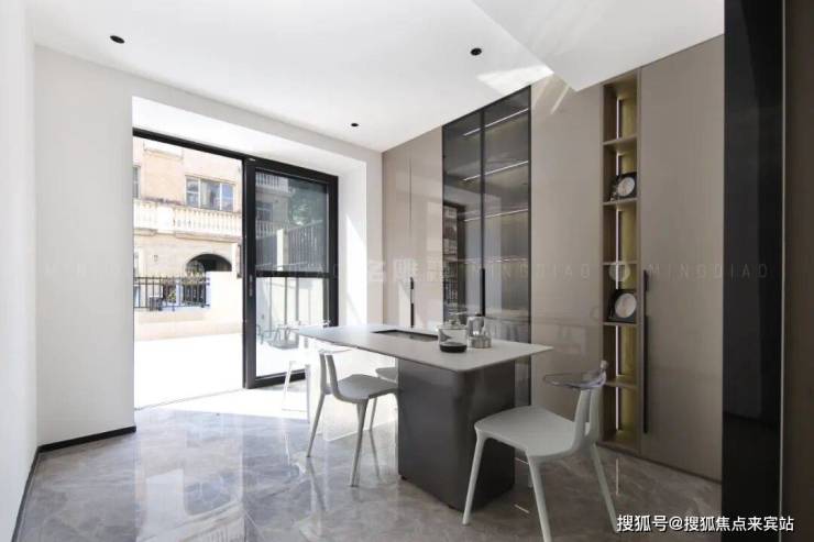 水吧台将餐厅与户外自然衔接,同时也拉长了餐厅的视线,让空间显得更加开阔明朗,平时亦可在此与亲友饮茶、闲谈生活趣事。