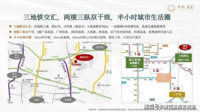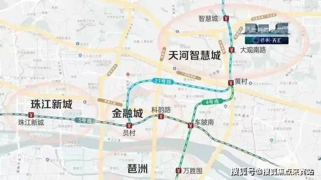 项目距离21号线大观南路站约1.2公里,步行大约20分钟可达,一站即可换乘4号线前往金融城及琶洲地区,四站后可在员村换乘5号线直达珠江新城。